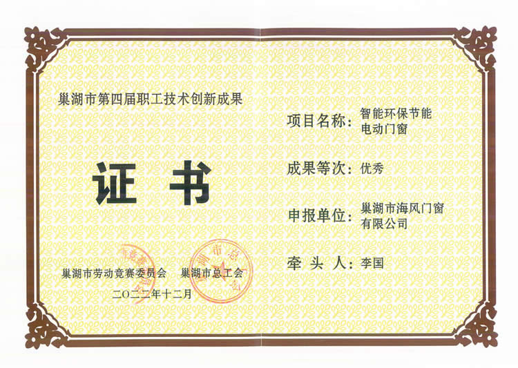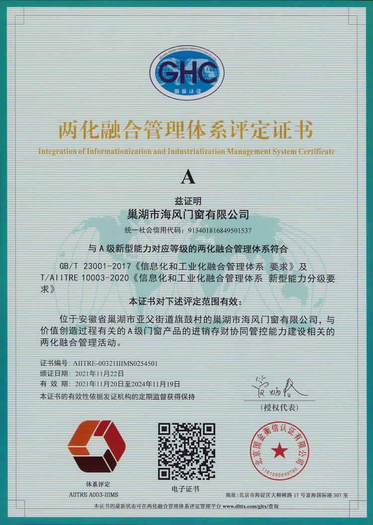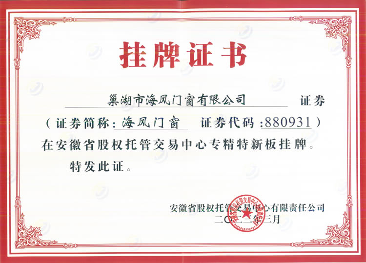About us安徽省海風(fēng)門(mén)窗有限公司位于巢湖市巢二路(亞父段)100號(hào),公司創(chuàng)辦于2005年。占地面積20000平方米,注冊(cè)資金500萬(wàn)元,流動(dòng)資金9000余萬(wàn)元,固定資產(chǎn)4000余萬(wàn)元。擁有國(guó)內(nèi)先進(jìn)的鋁合金、塑鋼門(mén)窗及中空玻璃生產(chǎn)線(xiàn)、各類(lèi)機(jī)械設(shè)備60臺(tái)(套)。公司員工200名,其中技術(shù)研發(fā)人員15名,高級(jí)職稱(chēng)5名,中級(jí)職稱(chēng)10名,二級(jí)建造師5名。質(zhì)量檢驗(yàn)、測(cè)試手段科學(xué)先進(jìn),檢驗(yàn)儀器、設(shè)備齊全,整體資源力量雄厚,年施工總量10萬(wàn)平方米。